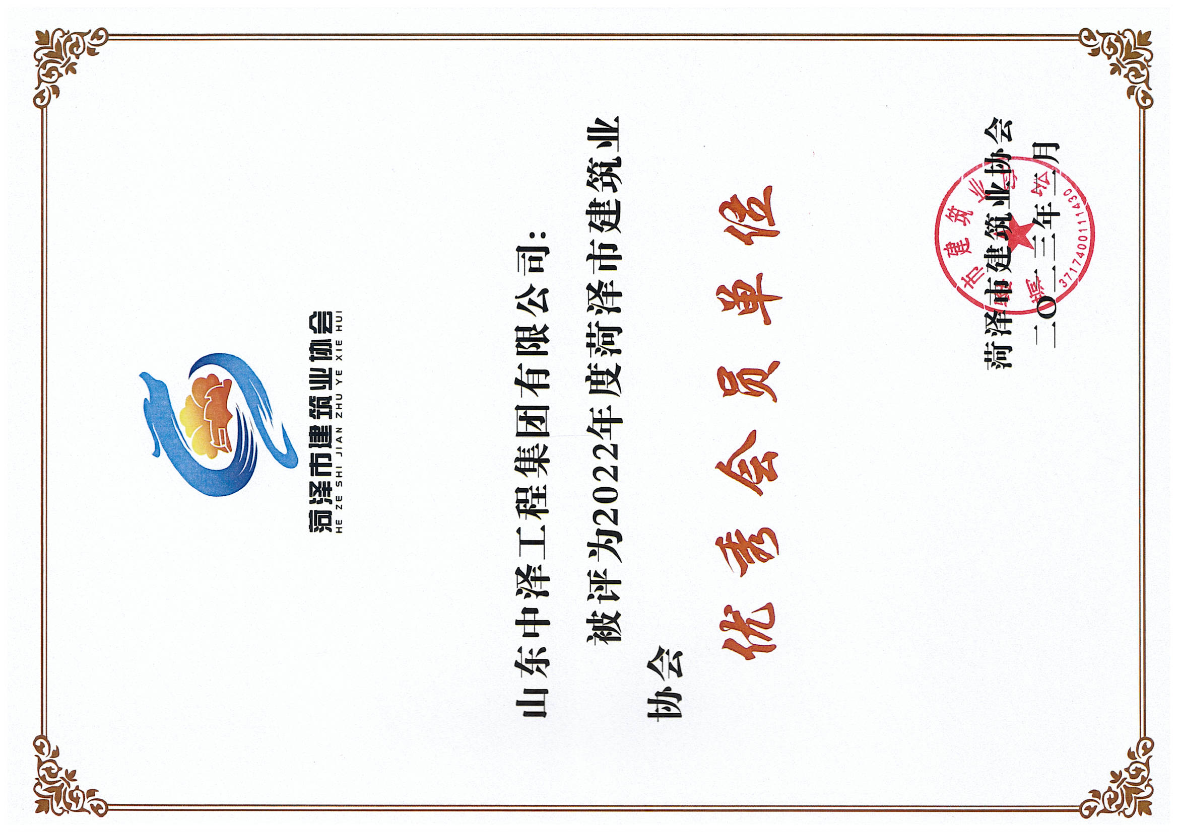 2022年度菏澤市建筑業(yè)協(xié)會優(yōu)秀會員單位
