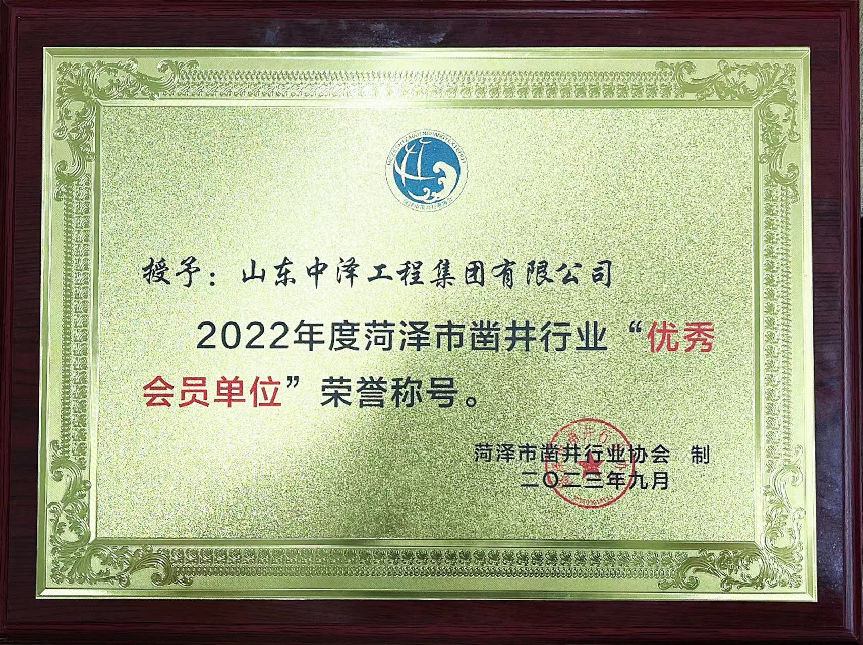 熱烈祝賀山東中澤工程集團有限公司榮獲2022年度菏澤市鑿井行業(yè)“優(yōu)秀會員單位”榮譽稱號