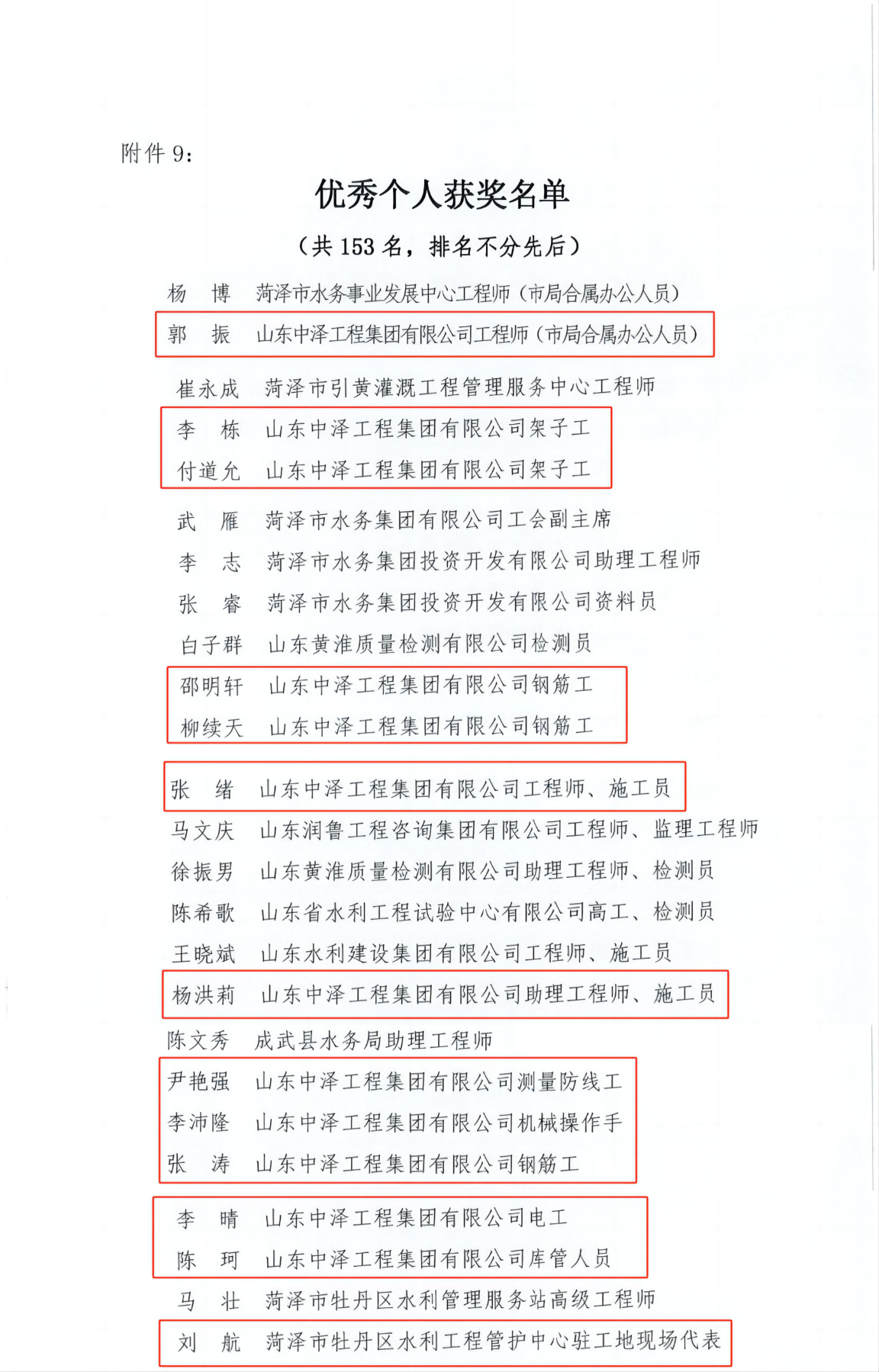 近日,菏澤市水務(wù)局、菏澤市總工會聯(lián)合印發(fā)《通知》,公布2024年度全市水利工程建設(shè)“爭進度、賽質(zhì)量、比擔(dān)當(dāng)、創(chuàng)精品”創(chuàng)新創(chuàng)優(yōu)勞動競賽獲獎名單,山東中澤工程集團榮獲3項優(yōu)質(zhì)工程獎、4項文明工地獎、3項QC小組成果獎、7項優(yōu)勝集體獎、3項優(yōu)秀組織個人獎、13項優(yōu)秀個人獎、16項優(yōu)秀項目經(jīng)理獎。
