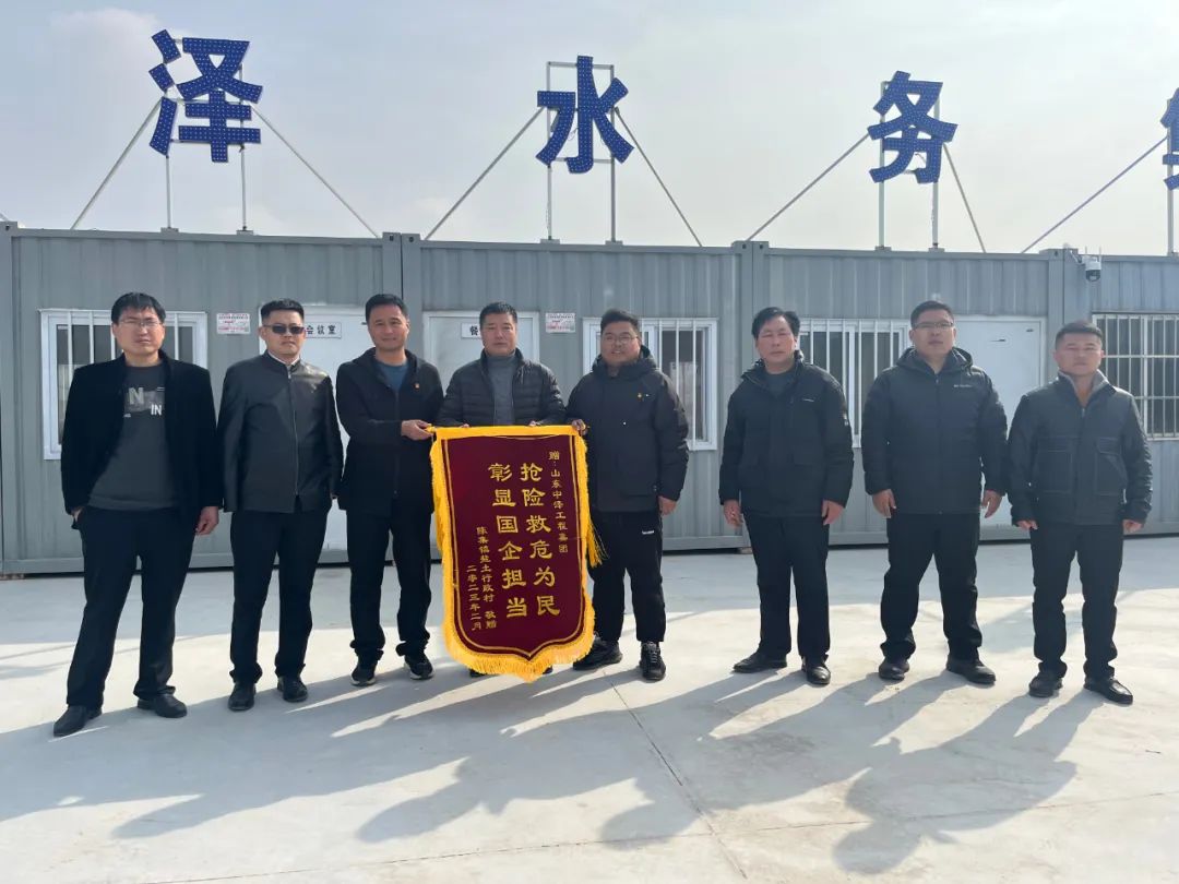 2月23日上午,陳集鎮(zhèn)鹽土村有關(guān)領(lǐng)導(dǎo)將一面寫著“搶險(xiǎn)救危為民,彰顯國企擔(dān)當(dāng)”的錦旗送到山東中澤工程集團(tuán)魯西新區(qū)項(xiàng)目部,對靳榮劍、翟慶鋒等人英勇救火的行為表示感謝。