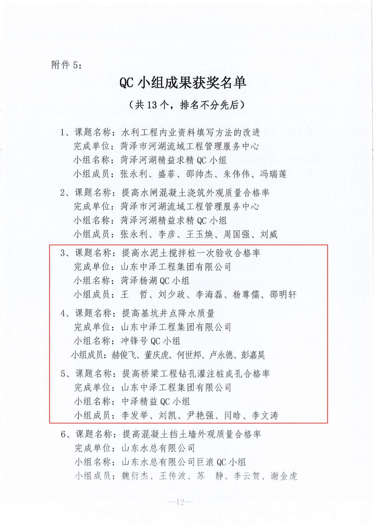 近日,菏澤市水務(wù)局、菏澤市總工會聯(lián)合印發(fā)《通知》,公布2024年度全市水利工程建設(shè)“爭進度、賽質(zhì)量、比擔(dān)當(dāng)、創(chuàng)精品”創(chuàng)新創(chuàng)優(yōu)勞動競賽獲獎名單,山東中澤工程集團榮獲3項優(yōu)質(zhì)工程獎、4項文明工地獎、3項QC小組成果獎、7項優(yōu)勝集體獎、3項優(yōu)秀組織個人獎、13項優(yōu)秀個人獎、16項優(yōu)秀項目經(jīng)理獎。