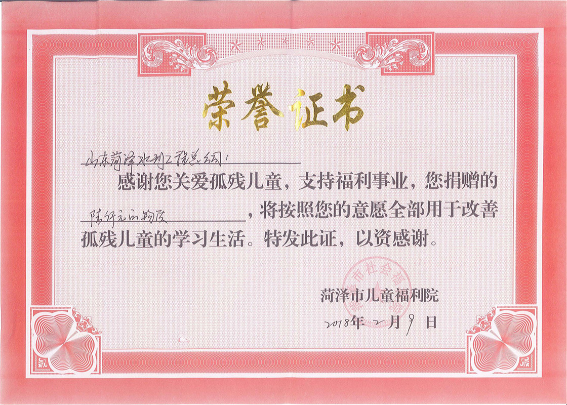 積極助力見義勇為募捐活動,僅僅山東菏澤水務(wù)工程有限公司踴躍奉獻愛心、積極回饋社會的一個縮影。自2015年以來,山東菏澤水務(wù)工程有限公司多次到菏澤福利院慰問并捐贈物資。自公司成立以來,堅持將中華優(yōu)秀傳統(tǒng)文化融入企業(yè)文化建設(shè)之中,將誠信忠厚、勤勞敬業(yè)、開拓進取、服務(wù)社會、實業(yè)報國等優(yōu)良傳統(tǒng)精髓,灌輸?shù)矫课粏T工的思想當中,使之成為人生奮斗、企業(yè)發(fā)展的源動力,更體國有企業(yè)應(yīng)有的服務(wù)意識和責任擔當。